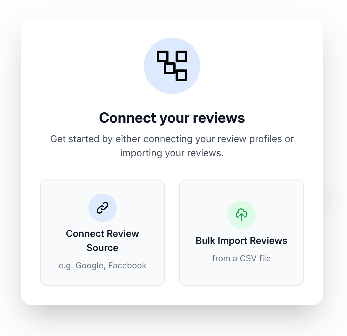 Google first — but also works with Facebook and other review platforms.
