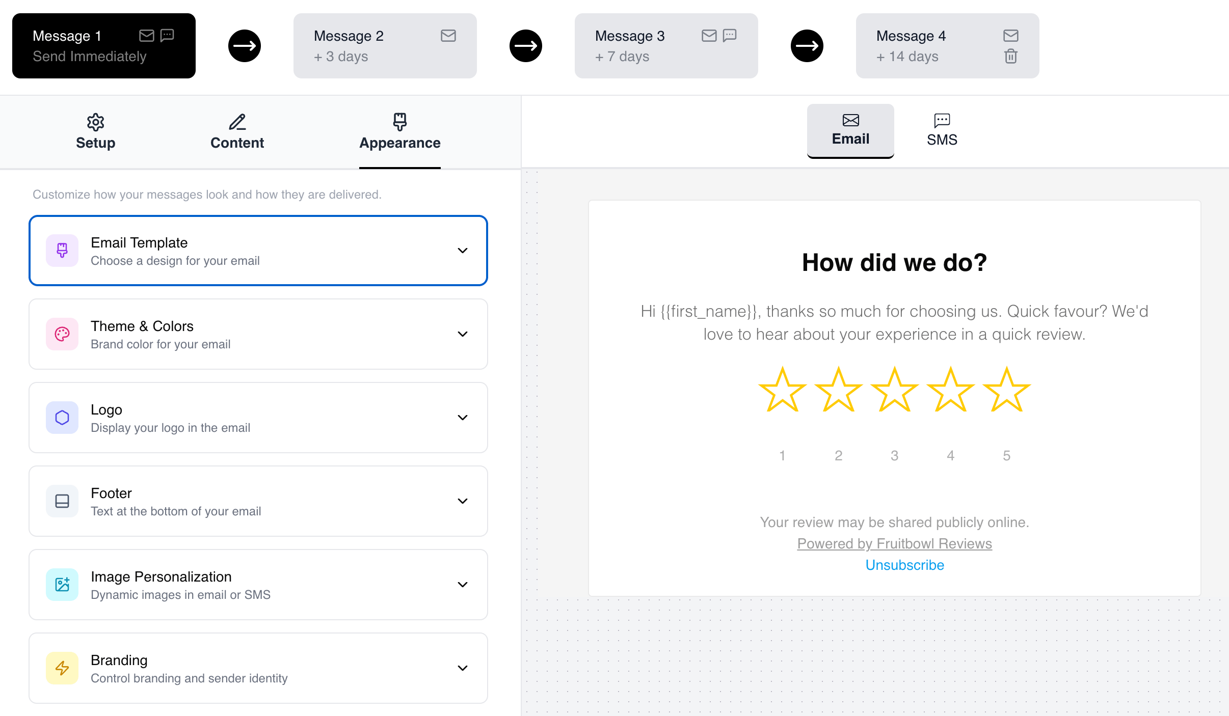 Auto email or SMS sequences that run after every customer interaction.